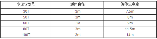 水泥罐又名水泥倉,是一種理想的散裝物料儲存裝置,目前被廣泛運用在水泥攪拌站的散裝水泥儲存方面。目前市場上水泥罐規格尺寸多種多樣,價格也高低不同,以下是常見的水泥罐尺寸: